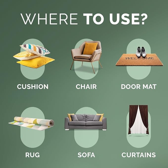 - Works on any fabric that absorbs: plush, linen, velvet, wool, jute, sisal
